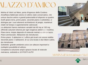 PRESTIGIOSO FABBRICATO D'EPOCA A MOLINA DI VIETRI SUL MARE Molina di Vietri sul Mare, porta d'ingresso della Costiera Amalfitana, proponiamo in vendita un intero fabbricato storico in ottimo stato conservativo, che unisce fascino antico e grandi potenzialità di sviluppo.L'edificio, disposto su quattro livelli (piano terra, primo piano, secondo piano e sottotetto), si distingue per i suoi elementi architettonici...