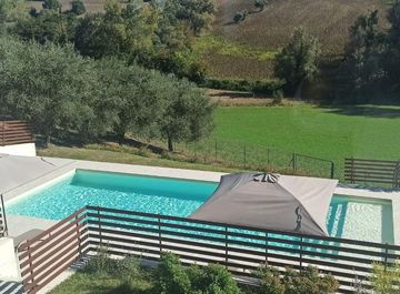 Immerso nel verde delle colline marchiagiane, splendido casale nuovo! con mq. 20.000 di terreno piu' uliveto e corte di mq. 2.000 con piscina. Il casale e' suddiviso in due appartamenti piu' dependance indipendente. P. T. ingresso indipendente, soggiorno, cucina, 2 camere matrimoniali con bagno in camera; primo piano con con ingresso indipendente, ampio salone con camino, cucina, camera matrimoniale, cameretta,...